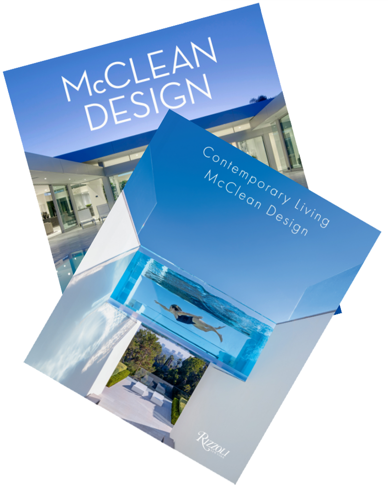 The first book, showcases a collection of visionary custom-built residences that epitomize luxury in California. Designed to accommodate the highest specifications, these homes feature a range of lavish amenities, including indoor gyms, hair salons, and wellness rooms, along with standout elements like champagne vaults and movie theaters. It chronicles McClean’s rise to prominence, highlighting projects from his first Bird Streets home in the Hollywood Hills to the record-setting Bel Air residence of Beyoncé and Jay-Z. The book includes detailed descriptions, sketches, and site plans, illustrating McClean's innovative integration of glass and water to create a seamless connection between indoor and outdoor spaces.