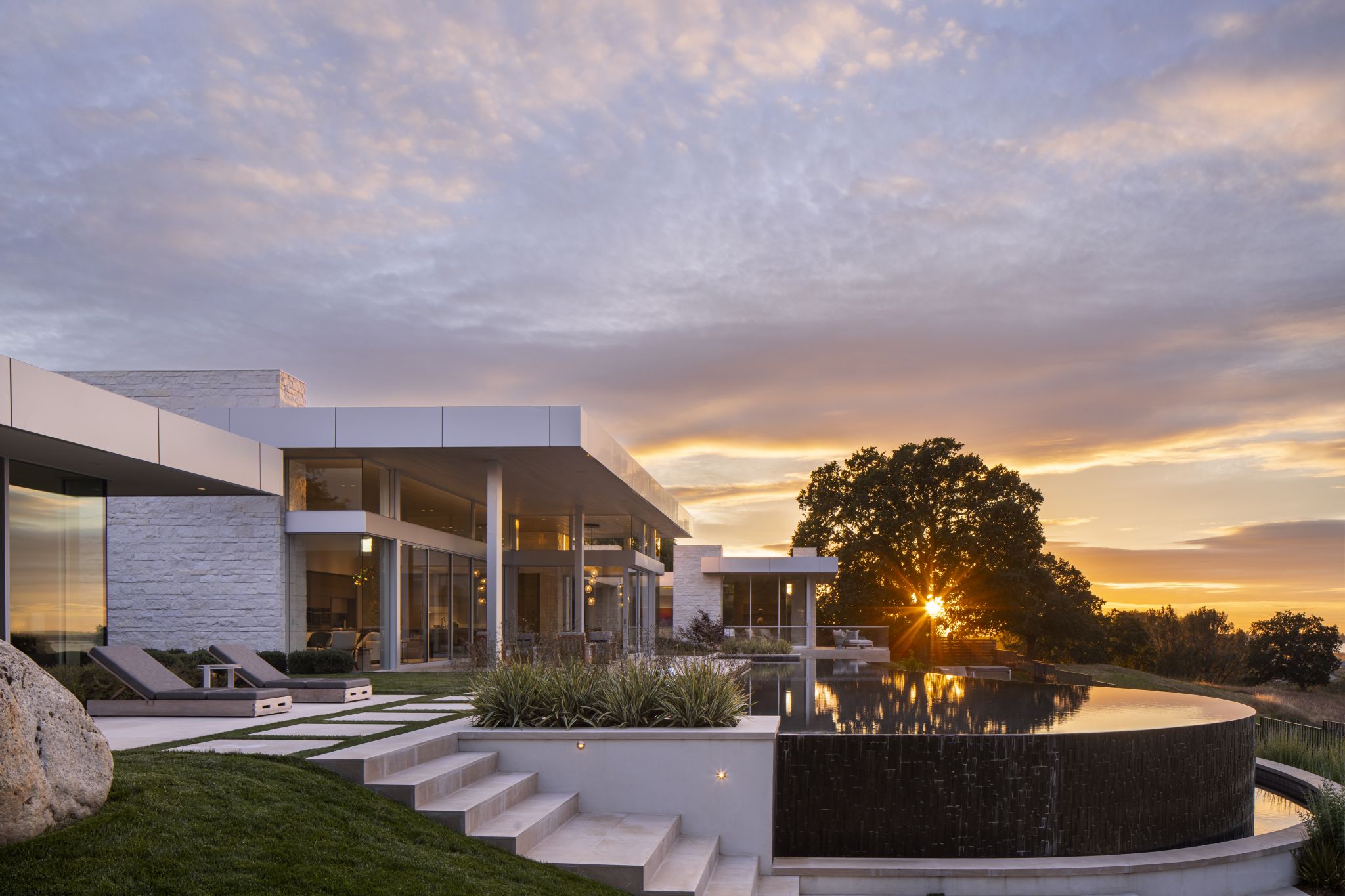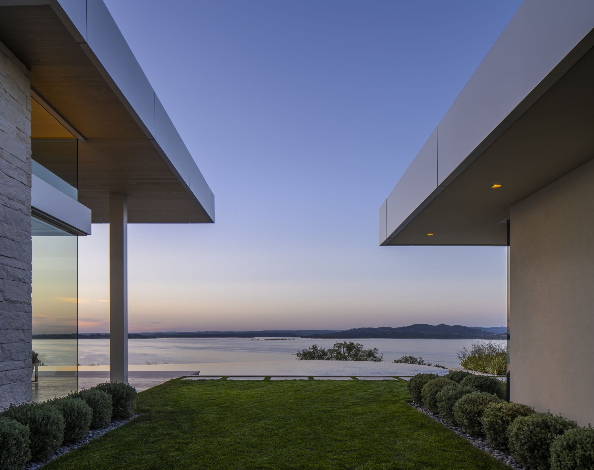 Our goal from the outset was to create a home that embraced the landscape, unfolding across the site to maximize eastern views of the lake while carefully preserving several mature oak trees. To the west, the property also enjoys long views of the Sacramento Valley and the distant coastal mountains. We designed the layout with both orientations in mind, considering how each space would be used throughout the day and working to minimize exposure to the street and cars from the primary living and garden spaces.