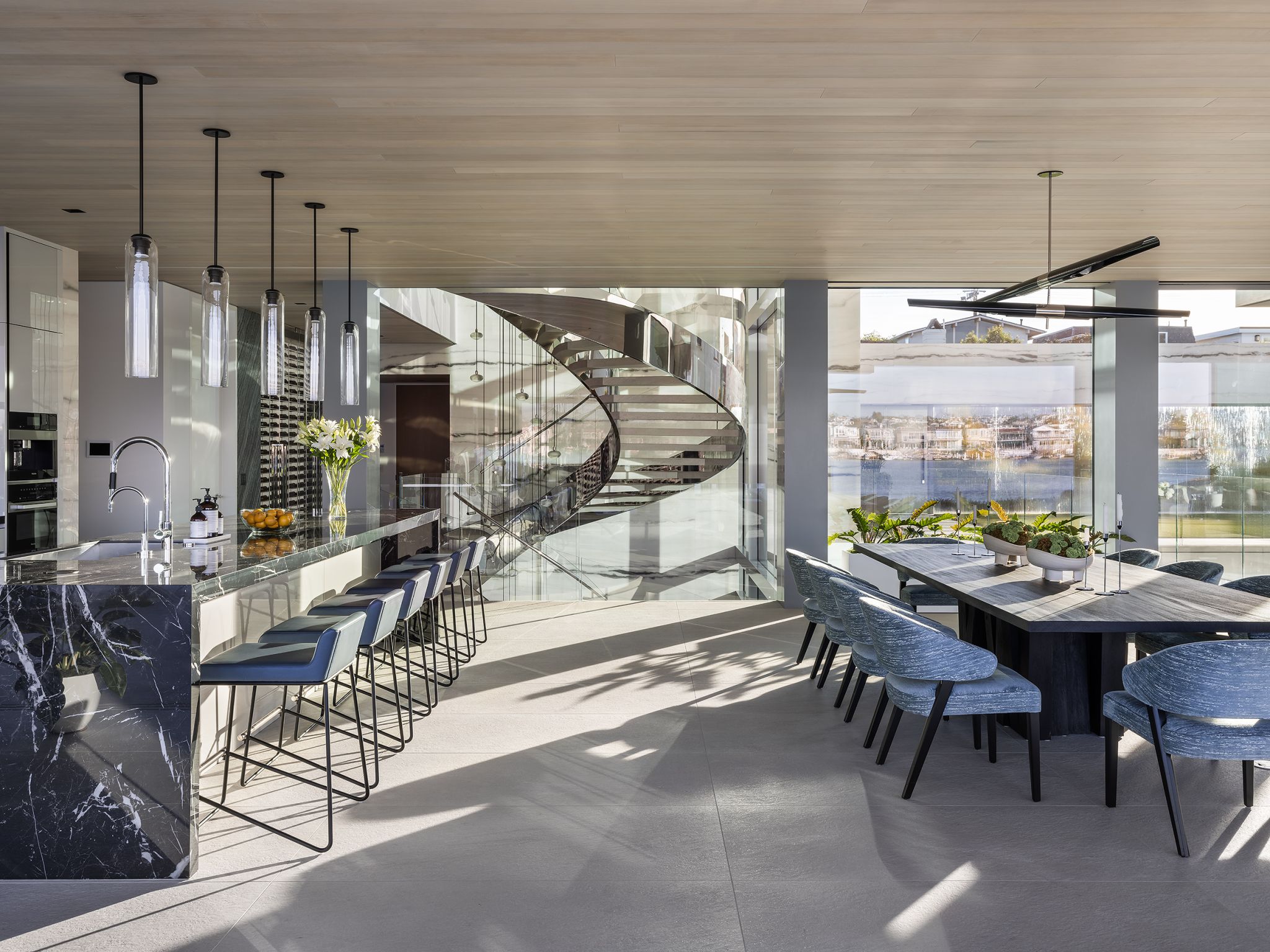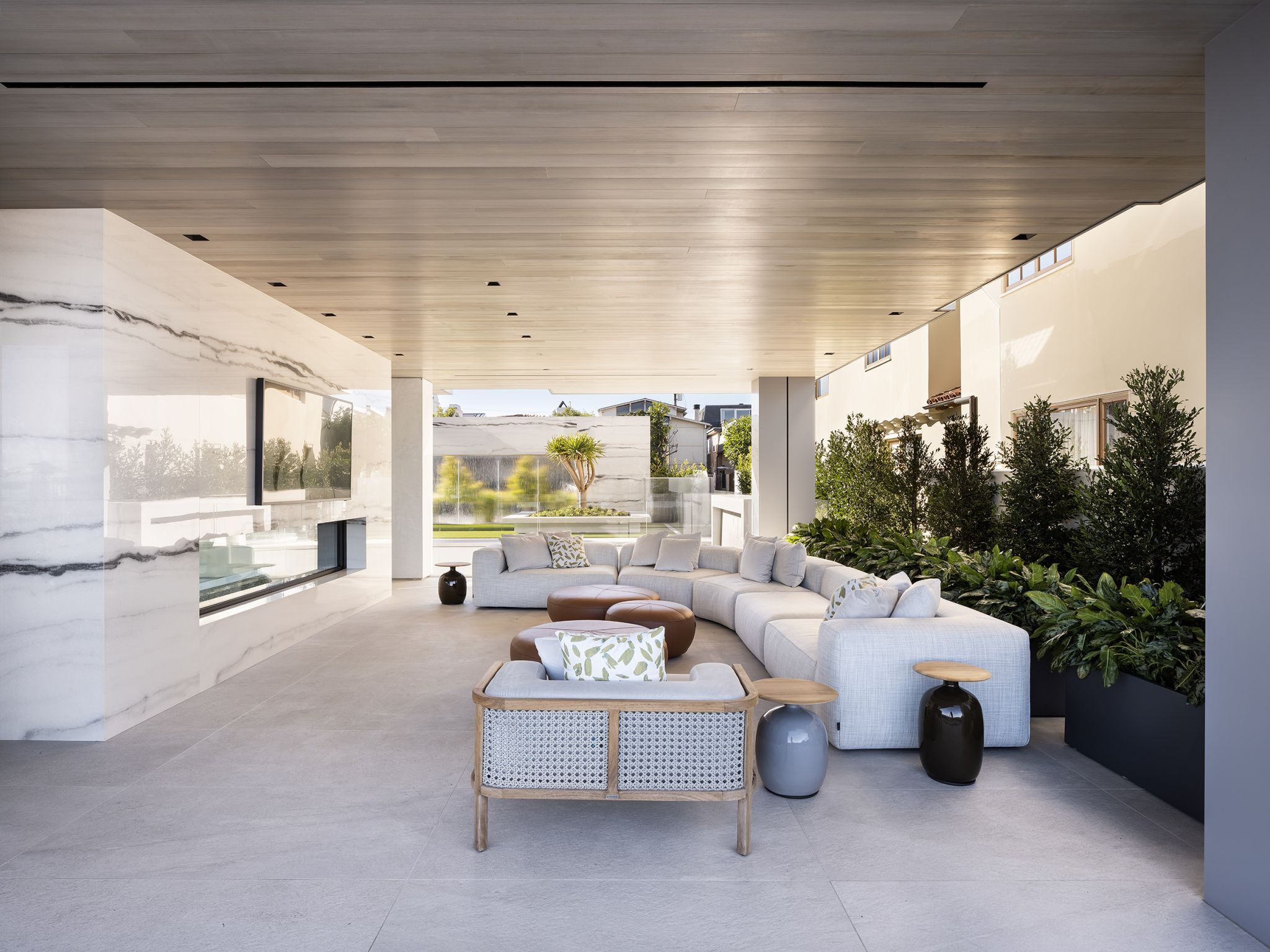 Balboa Peninsula runs parallel to the Pacific coast, just south of Newport Beach, enclosing a sound alive with pleasure boats. It’s a picturesque setting for waterfront homes—but most are generic structures squeezed onto narrow lots. When a young entrepreneur commissioned McClean Design to create a house on a rare triple lot, the vision was clear: a modern retreat for family and friends that made a bold architectural statement. With interior designer Lynda Murray, the client embraced an ambitious design that pushed the limits of scale, material, and transparency.